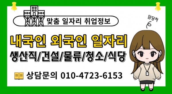 - 본 게시물은 일자리 취업정보 에서 제공한 자료로 개인정보를 포함하고 있으며 임의유포, 수집, 배포가 금지됩니다.